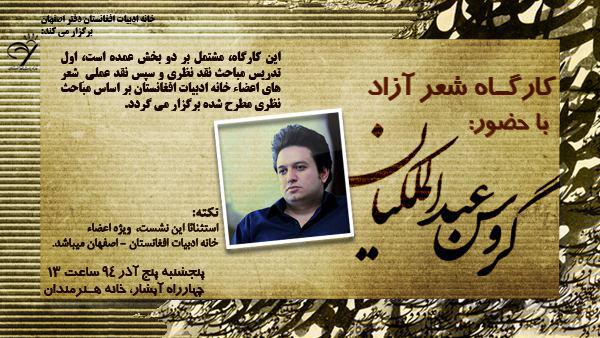 برگزاری کارگاه شعر با حضور گروس عبدالملکیان در دفتر اصفهان خانه ادبیات افغانستان